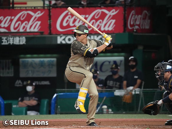 4番 山川 左安 ランナー1,2塁 内角高めのストレートをレフトへ先制タイムリーヒット! 1,3塁 西1-0オ ![]() 1