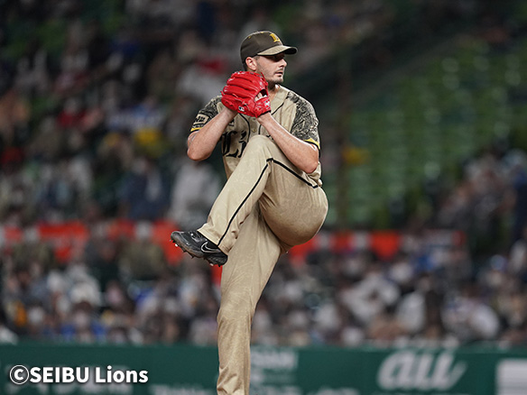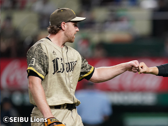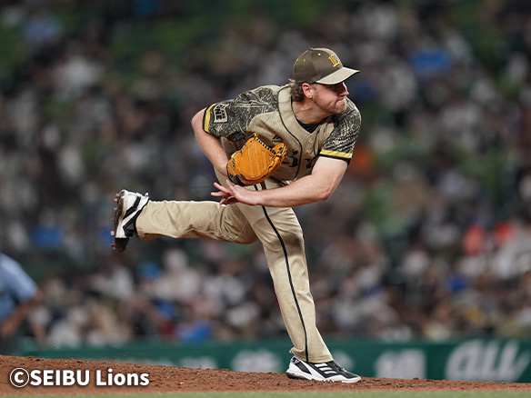 1番 外崎 空三振 外角低めのスライダーを空振り三振 3アウトチェンジ |