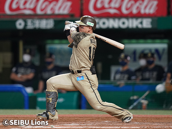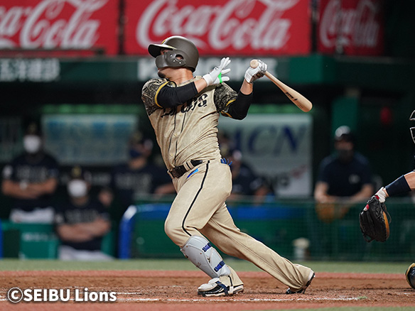 1番 外崎 中安 ランナー2塁 低めのフォークをセンターへ打ってヒット |