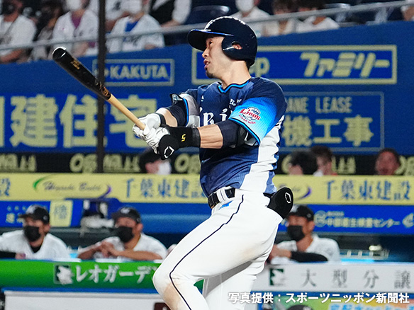 1番 外崎 中安 外角高めのストレートをセンターへ打ってヒット 1塁 |