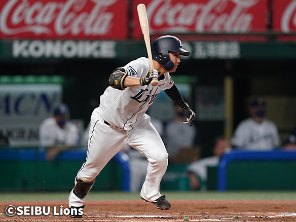 7番 上川畑 二失 外崎(二)のファンブルにより出塁する 1塁 |