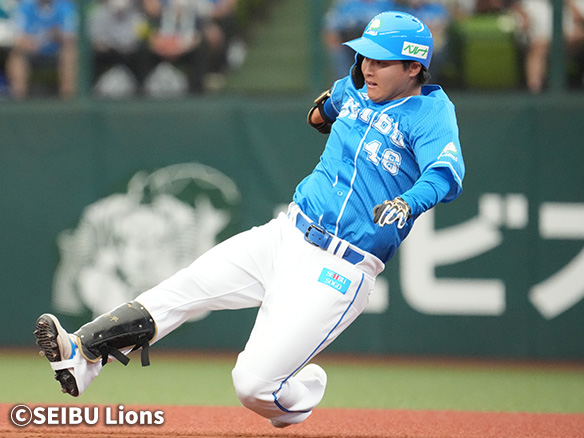 1番 源田 中安 153キロの内角低めのツーシームをセンターへ打ってヒット 1塁 |