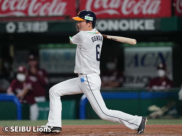 6番 源田 中安 内角のスライダーをセンターへ打ってヒット 1塁 |