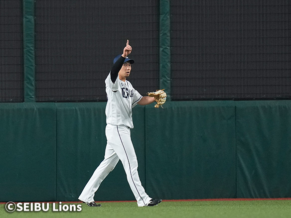 2番 源田 左邪飛 ファウルフライを小深田(左)が捕球してバッターアウト 2アウト |