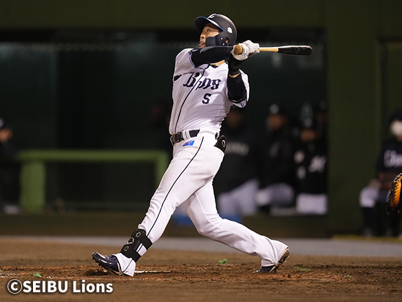 3番 外崎 左安 低めのスライダーをレフトへ打ってヒット 1塁 |
