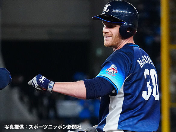 3番 外崎 左安 高めのストレートをレフトへ打ってヒット 1塁 |