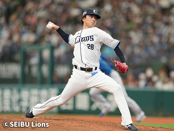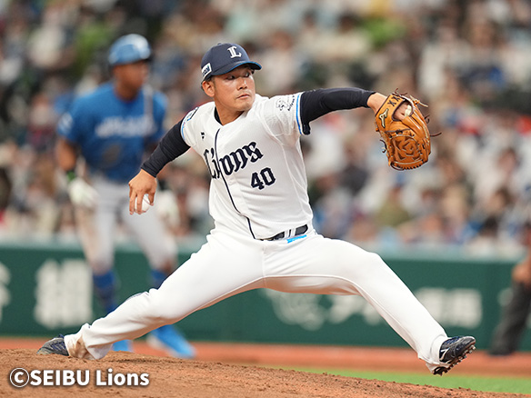 3番 外崎 空三振 152キロの内角高めのストレートを空振り三振 3アウトゲームセット |