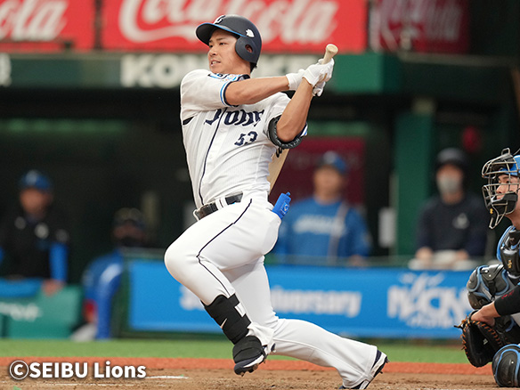 3番 外崎 二直 151キロの外角高めのツーシームを打つもセカンドライナー 2アウト |