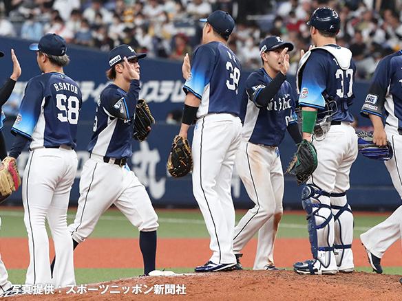 3番 外崎 空三振 低めのフォークを空振り三振 3アウトチェンジ |