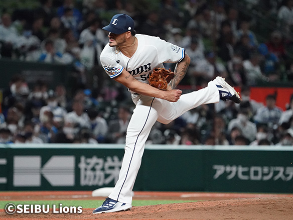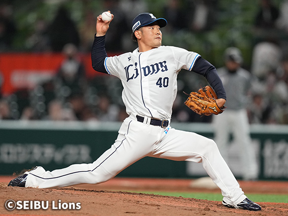 3番 外崎 空三振 外角低めのスライダーを空振り三振 3アウトチェンジ |
