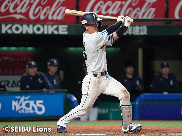 3番 外崎 右飛 ランナー2塁 高めのチェンジアップを打つもライトフライ 2アウト  |