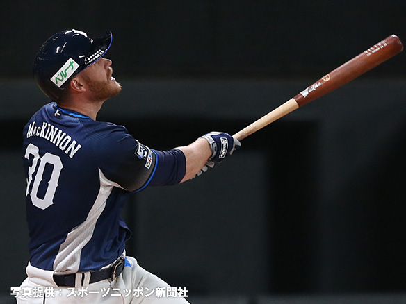 5番 マキノン 左安 内角のスライダーをレフトへ打ってヒット 1塁 |