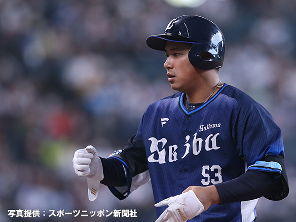 投手 平良 3番 松本剛 右安 外角低めのカットボールをライトへ打ってヒット 1塁 |
