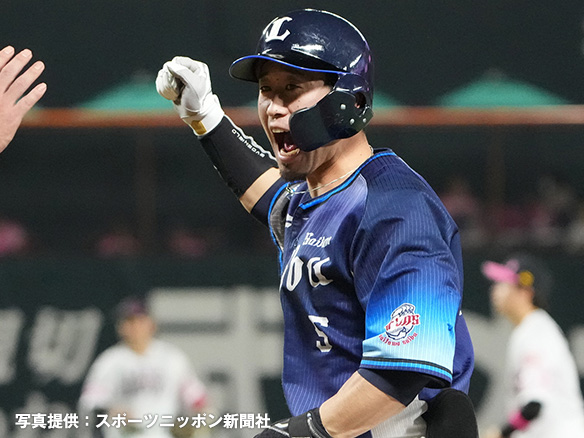 3番 外崎 空三振 高めのカットボールを空振り三振  |