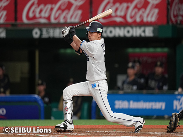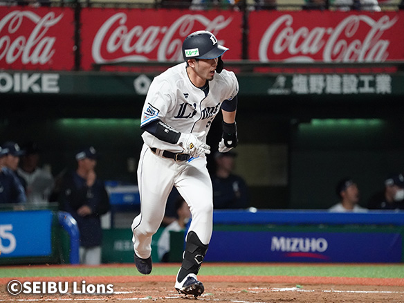 3番 外崎 左安 外角高めのカットボールをレフトへ打ってヒット 1塁 |