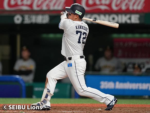 9番 若林 左2 外角高めのカットボールをレフトへ打ってツーベース 2塁 |