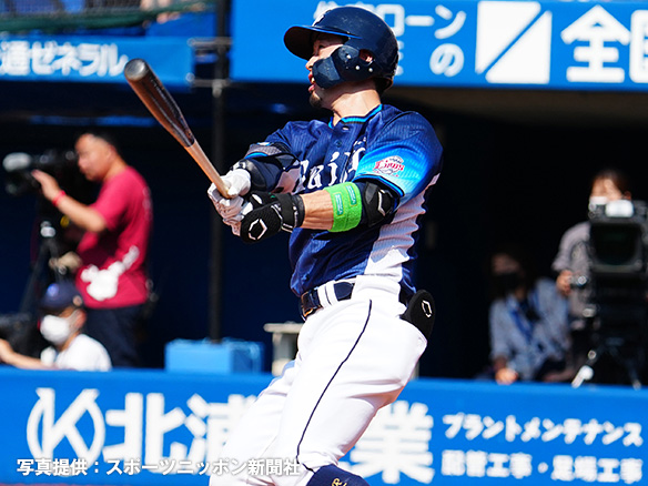 3番 宮崎 左安 ど真ん中のフォークをレフトへ打ってヒット 1塁 |