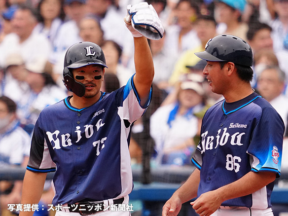 1番 源田 左安 低めのカーブをレフトへ打ってヒット 1塁 |