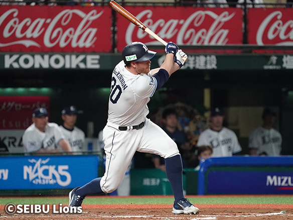 4番 マキノン 左安 外角低めのスライダーをレフトへ打ってヒット 1塁 |
