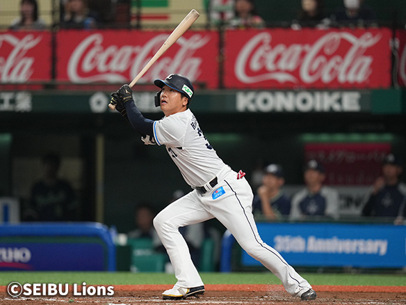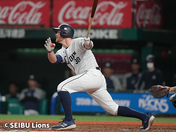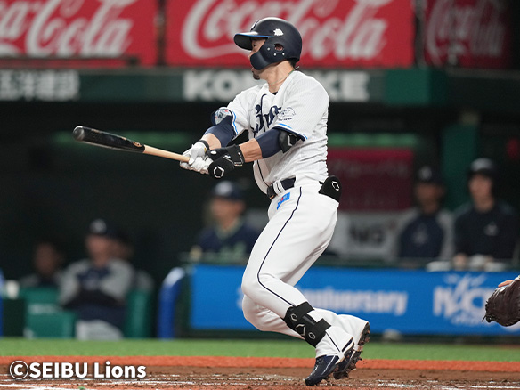 3番 外崎 右飛 外角高めのフォークを打つもライトフライ 1アウト |