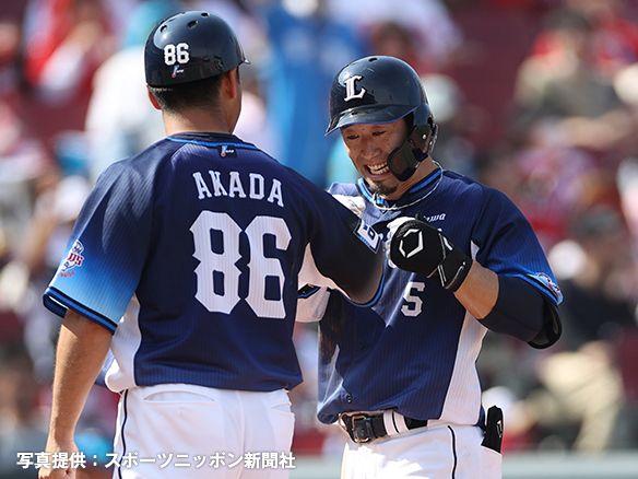 1番 源田 右3 内角低めのフォークをライトへ打ってスリーベース 3塁 |