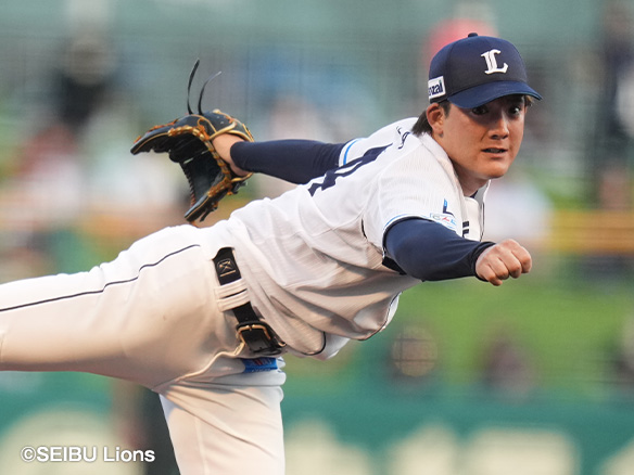 1番 源田 空三振 高めのスライダーを空振り三振 3アウトチェンジ |