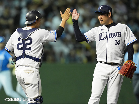 3番 外崎 右安 ランナー2塁 内角のシュートをライトへ先制タイムリーヒット! 2塁 西1-0日 ![]() 1