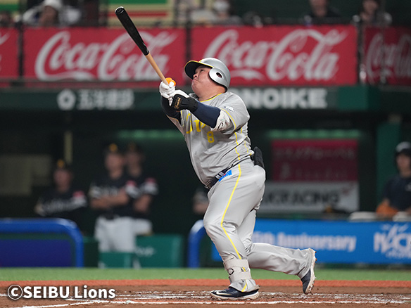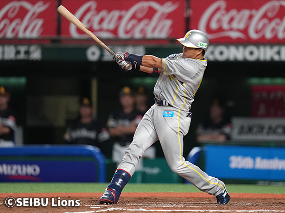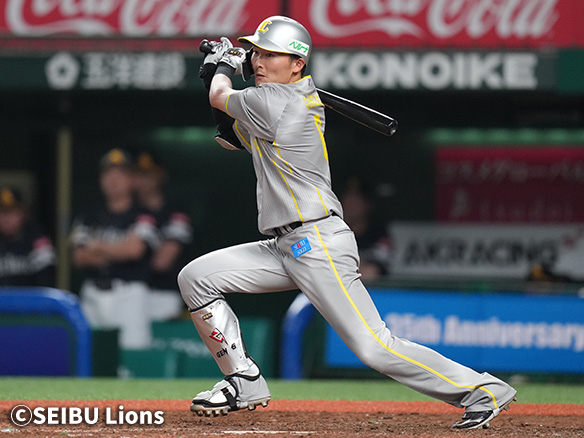 1番 源田 左安 外角のシンカーをレフトへ打ってヒット 1塁 |