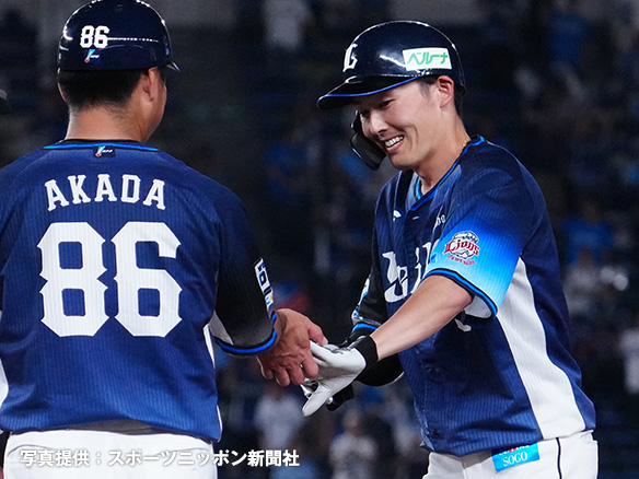 投手 西野 2番 源田 遊安 低めのスライダーをショートへ打ってヒット 1塁 |