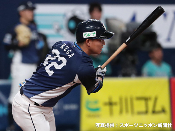 8番 古賀 左安 150キロの内角のストレートをレフトへ打ってヒット 1塁 |