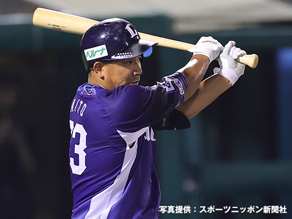 1番 村林 左本 カウント3-1からレフトスタンドへホームラン! 楽1-3西 ![]() 1