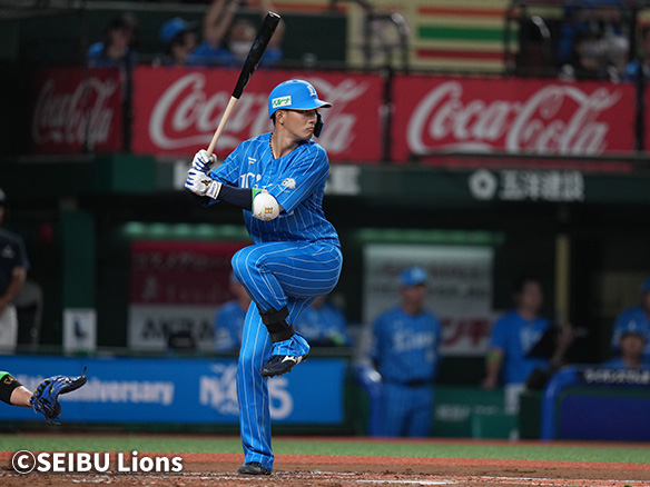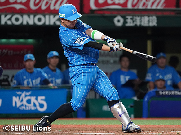 6番 栗山 左安 ランナー1塁 低めのストレートをレフトへ打ってヒット |