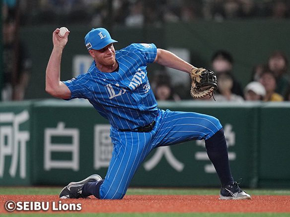 投手 山崎福 1番 ペイトン 三ゴロ 外角のストレートを打つもサードゴロ 1アウト |