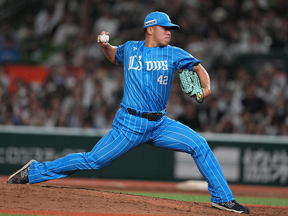 投手 今井 4番 セデーニョ 左安 低めのスライダーをレフトへ打ってヒット 1塁 |