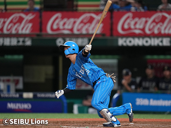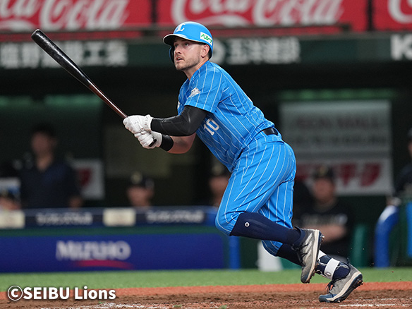 投手 東 5番 外崎 左安 ど真ん中のチェンジアップをレフトへ打ってヒット 1塁 |