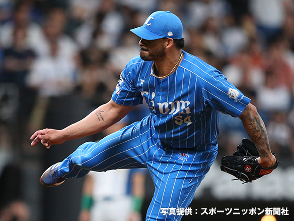 投手 與座 3番 マルティネス 右飛 外角低めのスライダーを打つもライトフライ 1アウト |