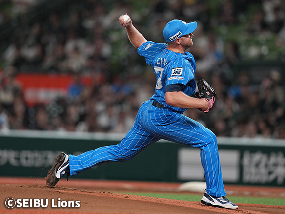 投手 ワゲスパック 6番 外崎 空三振 内角低めのチェンジアップを空振り三振 1アウト |
