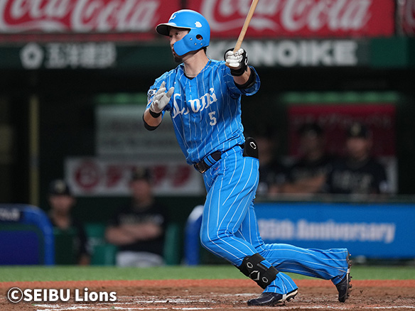6番 外崎 左2 外角低めのカットボールをレフトへ打ってツーベース 2塁 |