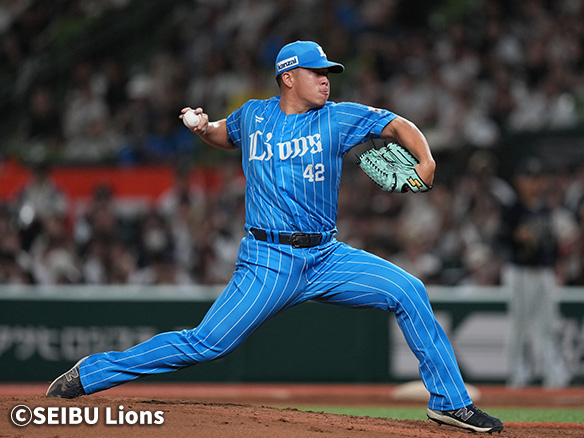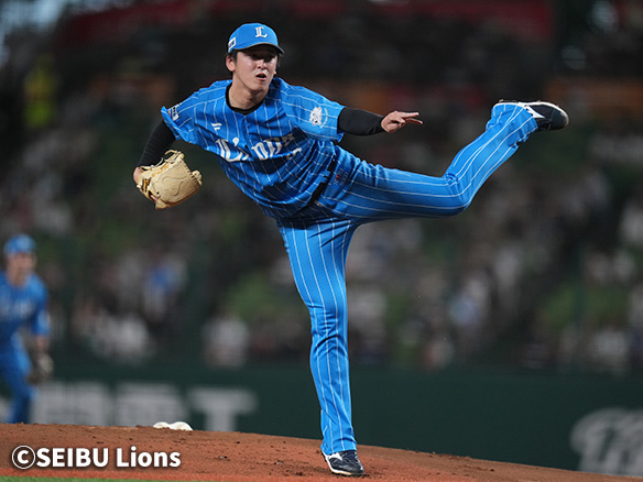 投手 宮城 2番 源田 空三振 外角低めのスライダーを空振り三振 1アウト |