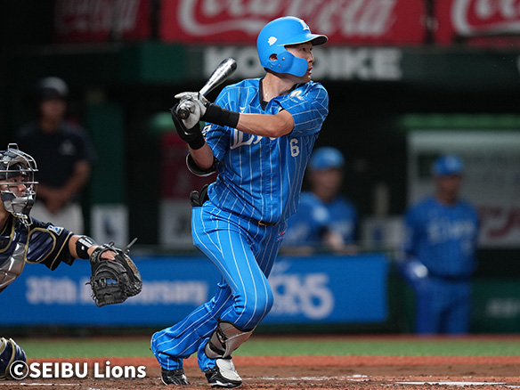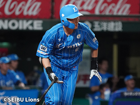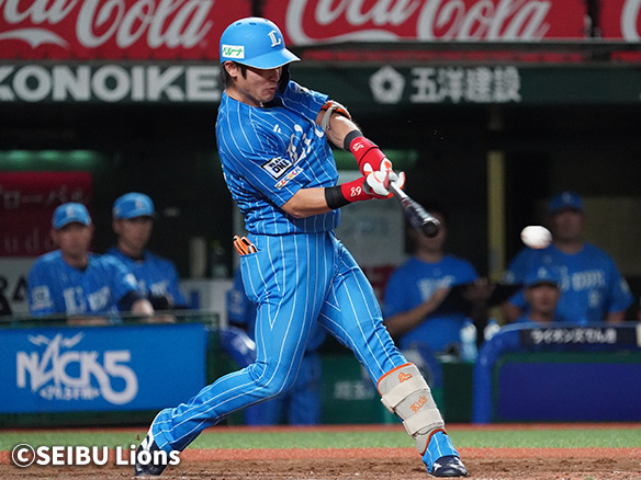 2番 源田 中安 高めのスライダーをセンターへ打ってヒット 1塁 |