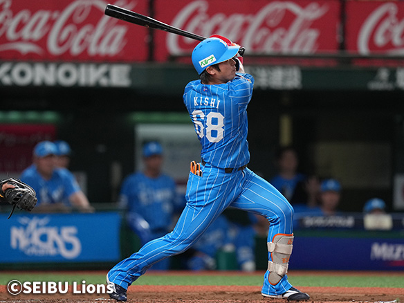 6番 岸 右安 ランナー2塁 内角低めのストレートをライトへ同点タイムリーヒット! 1塁 西1-1日 ![]() 1