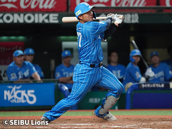 1番 源田 左安 ランナー1,2塁 内角低めのフォークをレフトへ打ってヒット 満塁 |