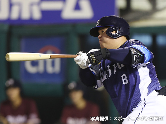 投手 則本 4番 渡部 左安 外角のスライダーをレフトへ打ってヒット 1塁 |