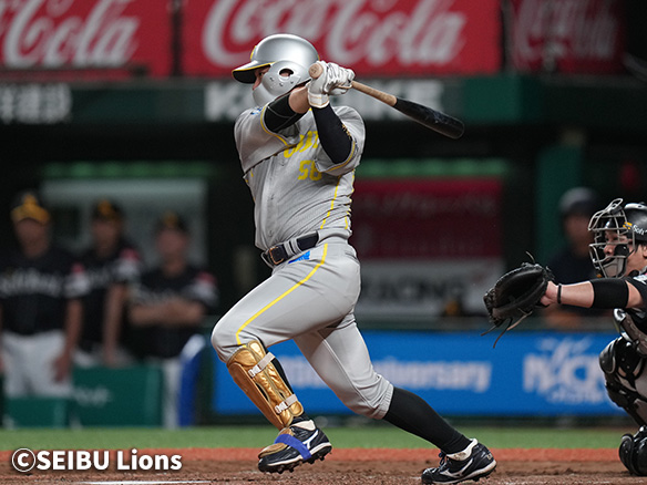 6番 外崎 右安 ランナー1,2塁 外角高めのストレートをライトへ打ってヒット |