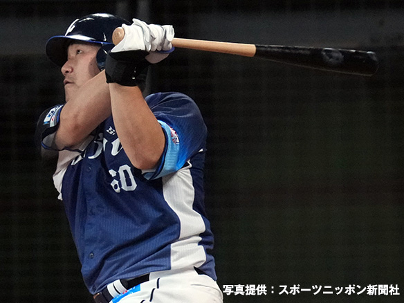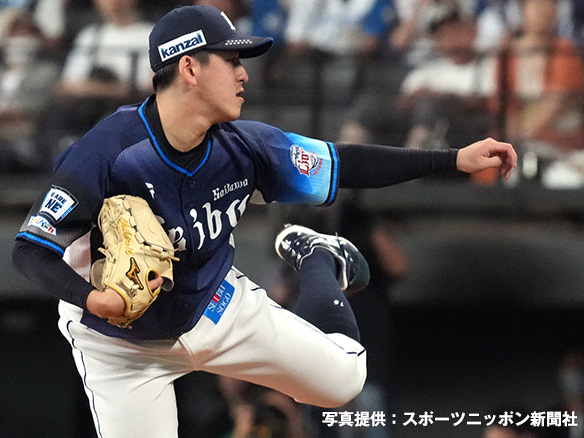 1番 源田 中安 ランナー3塁 外角のストレートをセンターへタイムリーヒット! 1塁 日1-6西 ![]() 1