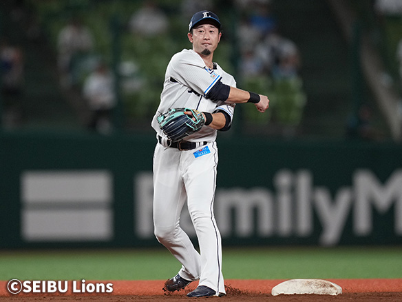 1番 源田 空三振 外角低めのチェンジアップを空振り三振 3アウトチェンジ |