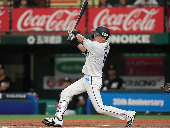6番 外崎 空三振 外角低めのスライダーを空振り三振 3アウトチェンジ |