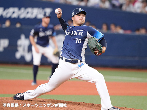 投手 曽谷 6番 外崎 空三振 外角低めのツーシームを空振り三振 1アウト |