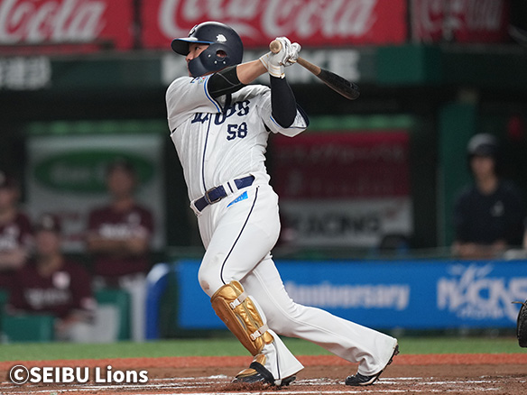 3番 佐藤龍 左3 ランナー2塁 外角低めのカットボールをレフトへ勝ち越しタイムリースリーベース! 3塁 西2-1楽 ![]() 2
