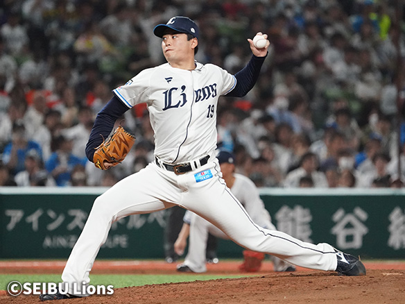 5番 外崎 空三振 低めのフォークを空振り三振 3アウトチェンジ |